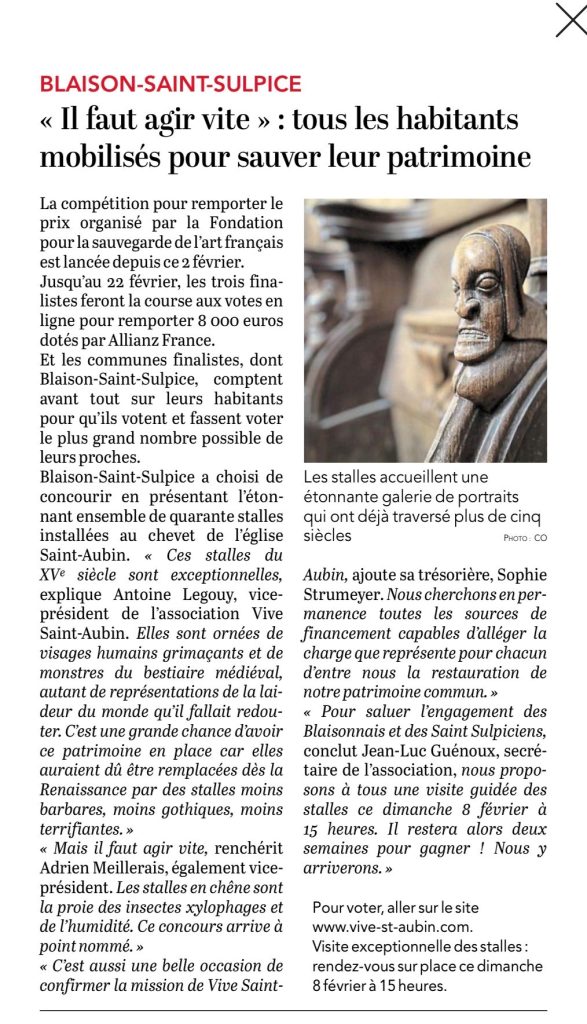 L’association Vive-Saint-Aubin propose une visite des stalles gothiques. Patrimoine qui fait actuellement l’objet d’un concours, plus d’informations sur le site de l’association : vive-st-aubin.com