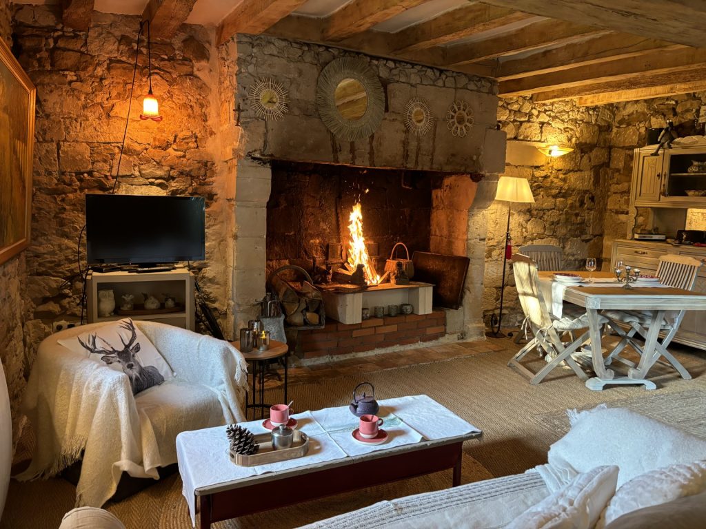 Descriptif : Un séjour de 30m2 avec cheminée qui fonctionne (un panier de bois fourni en saison)